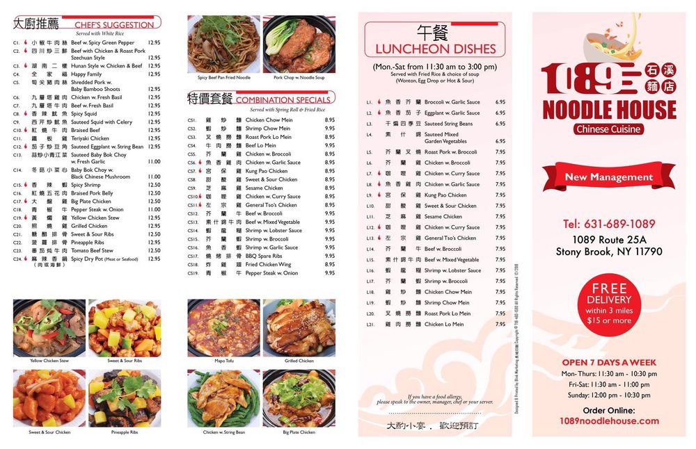 Welcome to 1089 Noodle House, your go-to destination for authentic Chinese noodle soups in Stony Brook, NY. This cozy eatery caters to both casual diners and busy professionals with options for delivery, takeout, and even catering. The menu features an impressive selection of house special noodle soups, including the mouthwatering Pork with Egg Drop Noodle Soup and the hearty Shanghai Style Noodle Soup, brimming with vegetables and proteins.